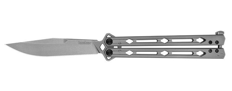 Do you flip? Do you want to flip? Then the Kershaw Lucha is for you. This is a high-quality butterfly knife that's made in the USA. Next level materials include a 14C28N stainless steel blade and all-steel handle. Next level performance comes from Kershaw's meticulous design. For instance, the blade tapers so that the top has more weight to pendulum around smoothly. The Lucha features dual KVT ball-bearing pivots for extra-easy operation. The handle has a rounded bevel so it rolls effortlessly in the hand. Even the latch is rounded so it never catches as you flip. The latch also features a positive stop so it never contacts the blade. The full-sized Lucha was designed with feedback from real flippers. This light, fast butterfly knife will jump, fly, and spin in your hands.